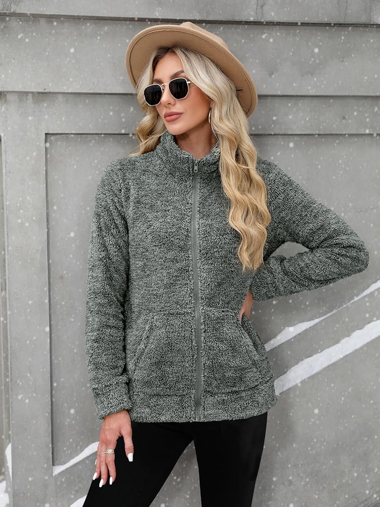 Sherpa Zip Up Jacket - Stay snug in colder seasons with our women's fleece jacket. Ideal for fall and winter, it's perfect for outdoor adventures or simply staying warm and stylish.