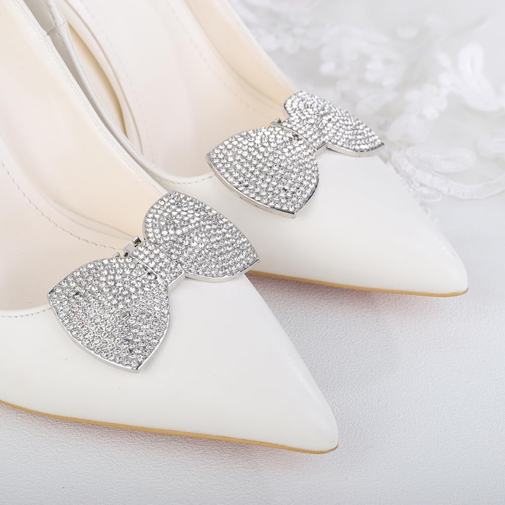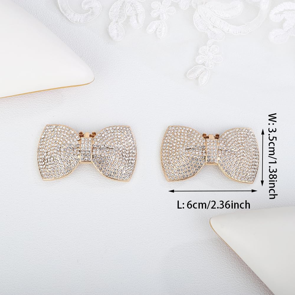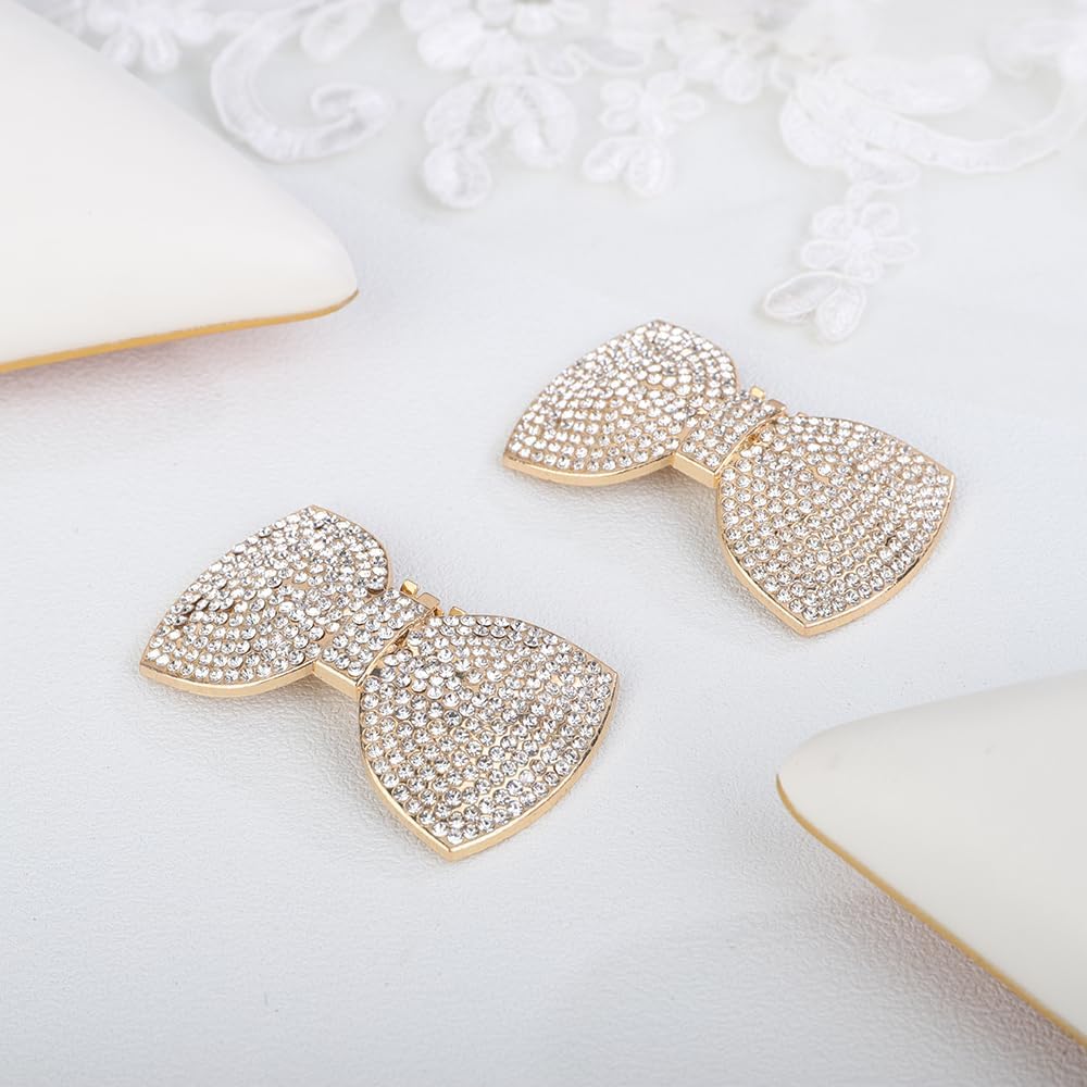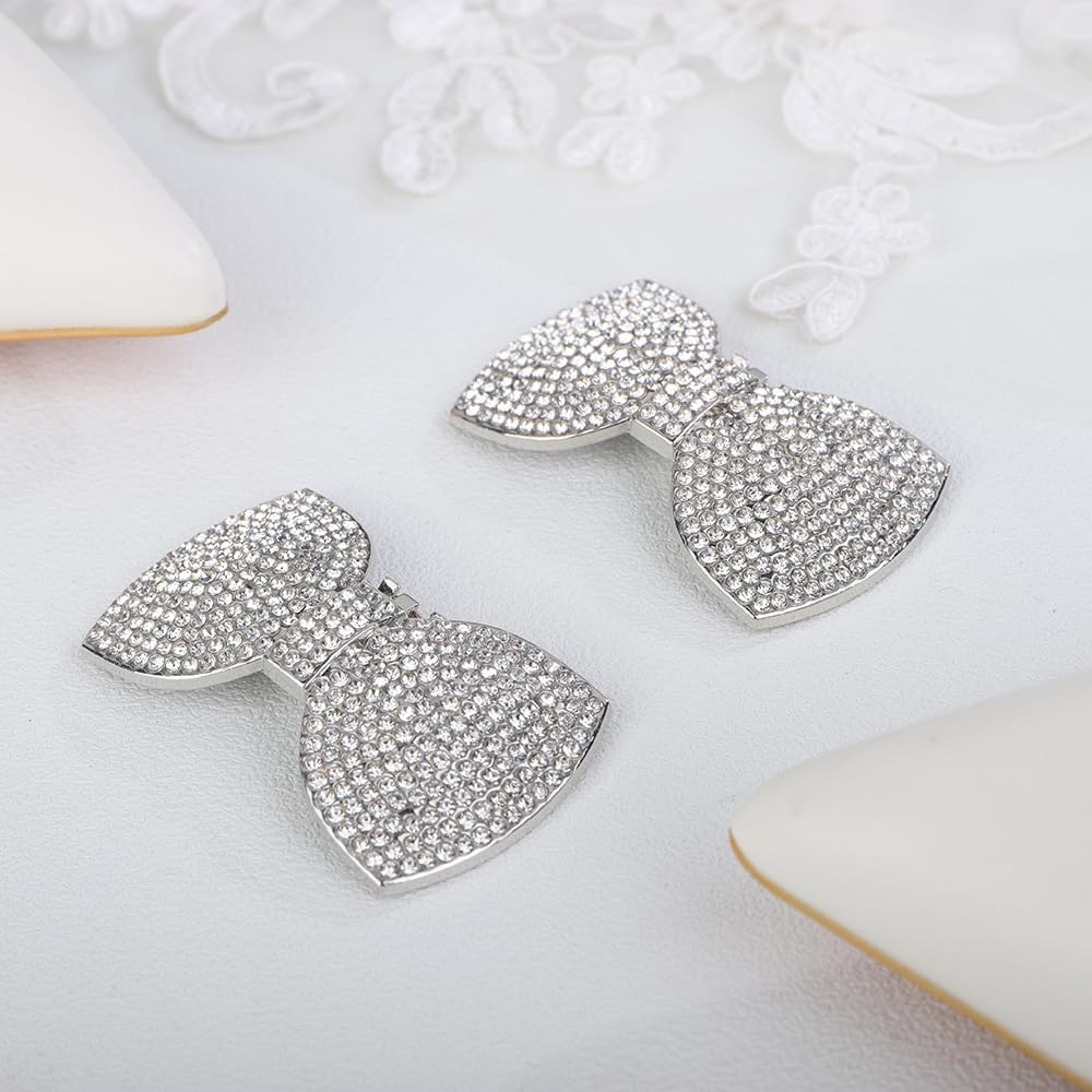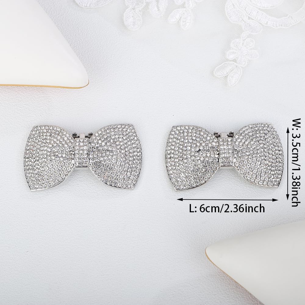 JWICOS 2Pcs Rhinestone Clips - Fashion Detachable Bow Heels Accessories Decoration - Classic Bridal Wedding Shoe Charms