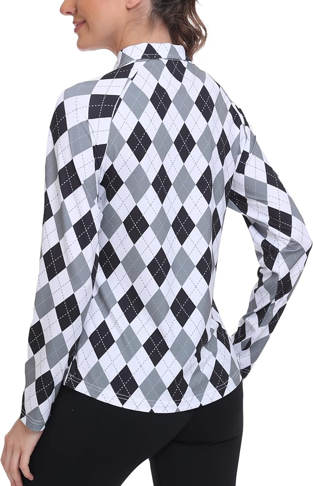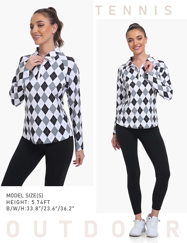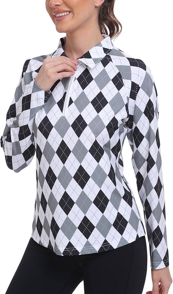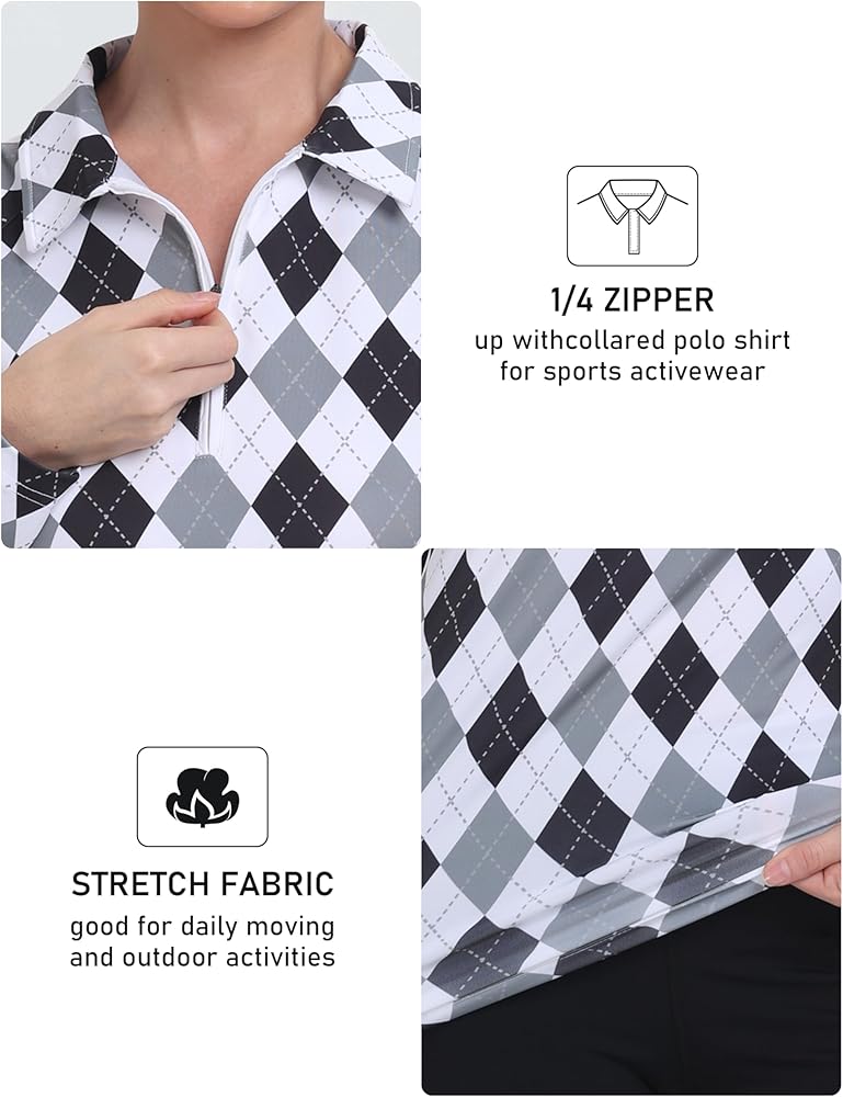 Features:Women's sport polo shirts for women with long sleeve,solid color, featuring a fashionable curved hem design and a zip closure that's easy to use during activities.