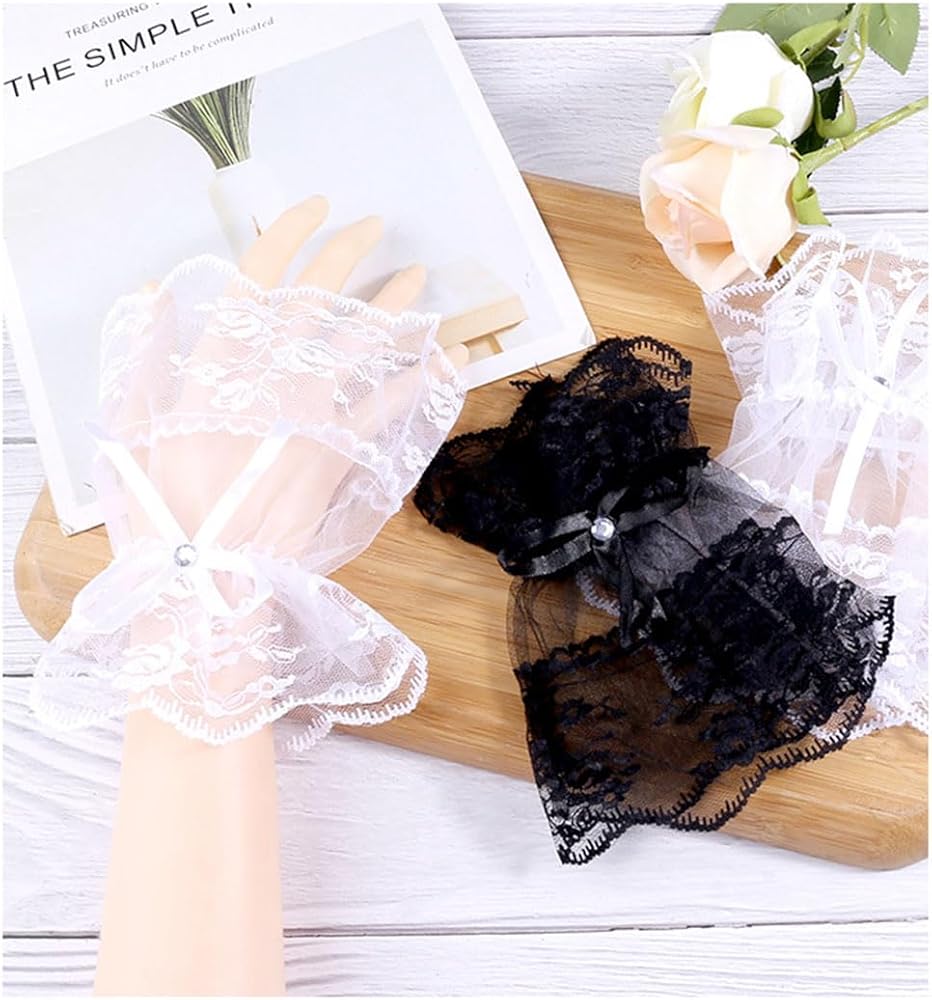 ☪☪☪ Lace Bow Design:Exquisite ruffle trim and hollow design can show your gentleness. Lace wrist cuffs have an elegant look, showcasing the sophistication and beauty of your hands.making you stand out from the crowd.