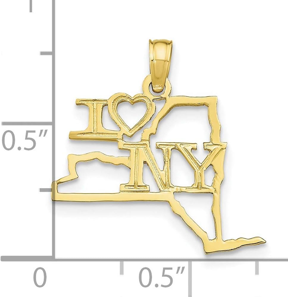 I Love New York NY Letters with Heart on State Shaped Pendant in Real 10k or 14k Gold