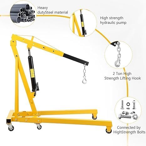 Heavy Duty Capacity:Lift heavy items with ease using the 2 Ton Engine Hoist, boasting a maximum capacity of 4400 lbs.In addition to its primary function of hoisting engines, it can also be utilized to efficiently unload heavy cargo, enhancing its versatility and utility in various applications