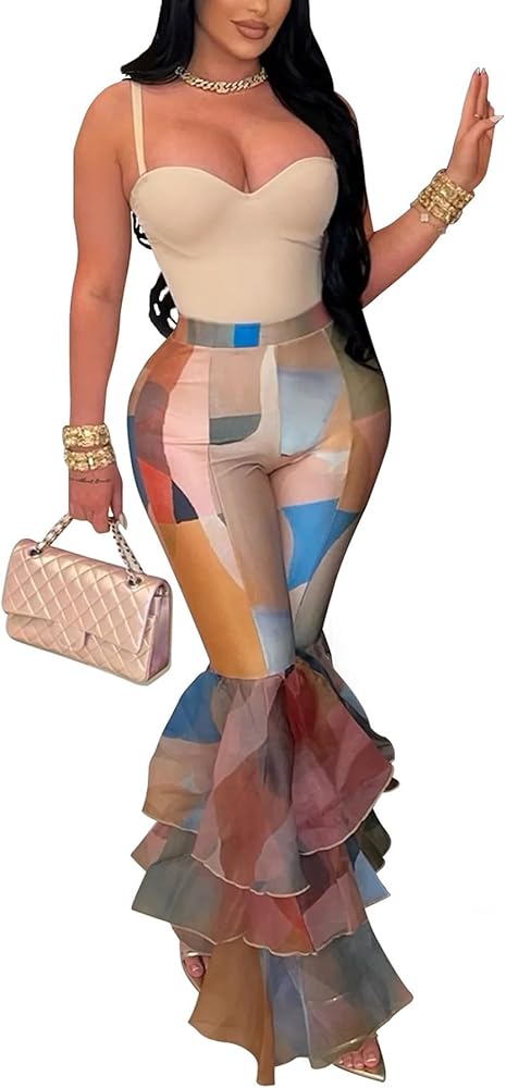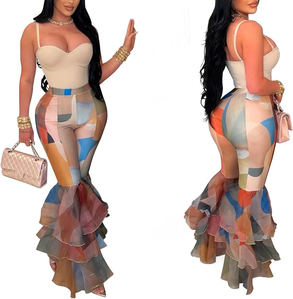 【Note】The multi ruffle flared pants for women suggest machine wash or cold hand wash, hang or dry, do not bleach. Please refer to size chart before purchase.