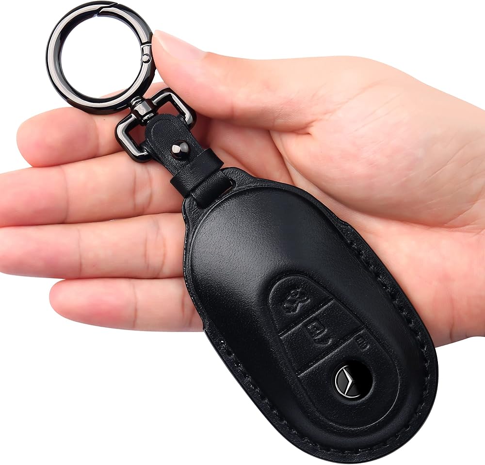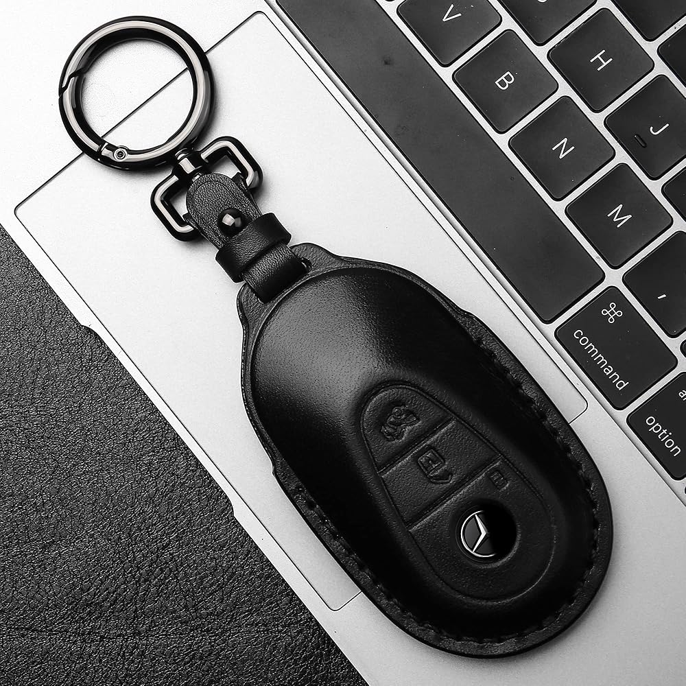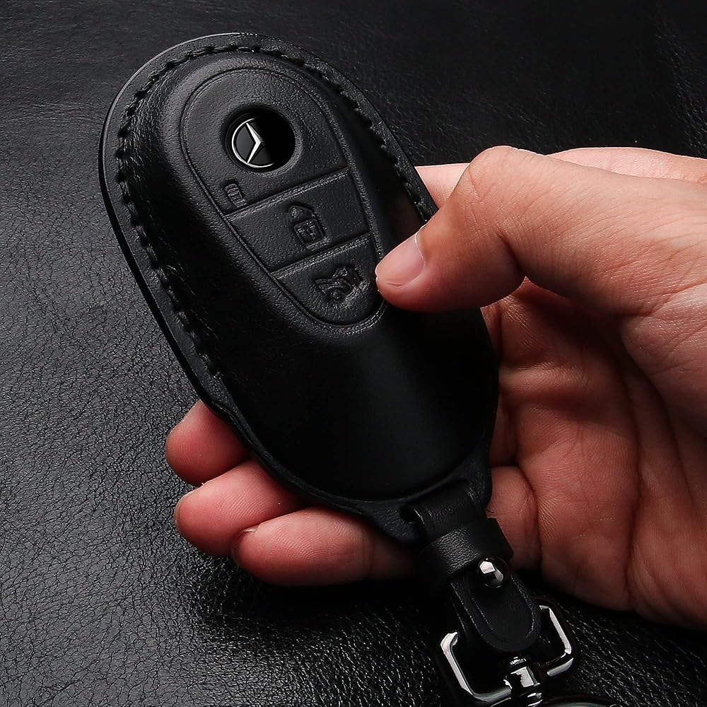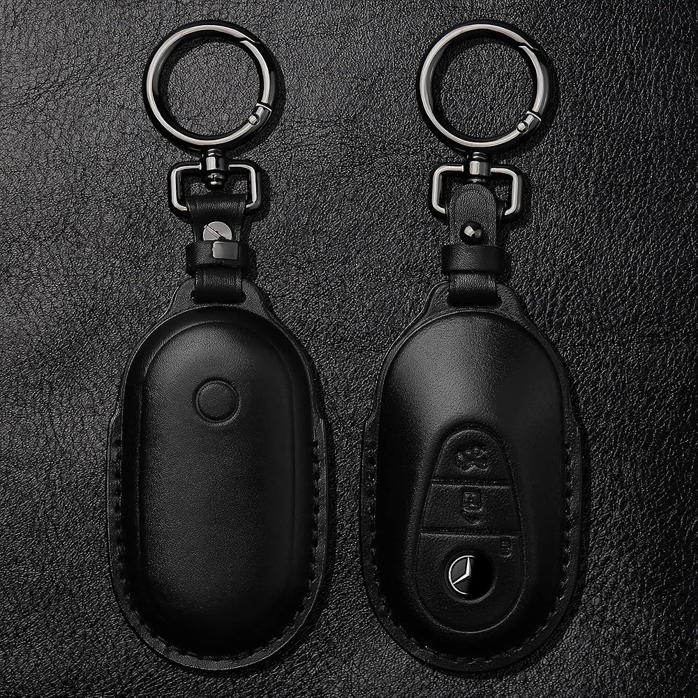 Tukellen for Mercedes Benz Leather Key Fob Cover with Keychain Compatible with 2020-2025 Mercedes Benz S-Class G-Class E-Class Smart Remote, Genuine Leather For Mercedes Benz Key case-Black