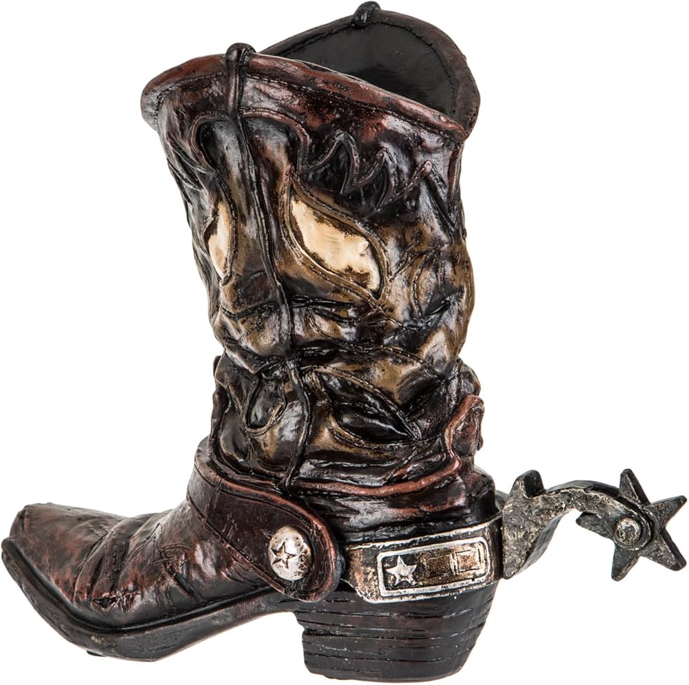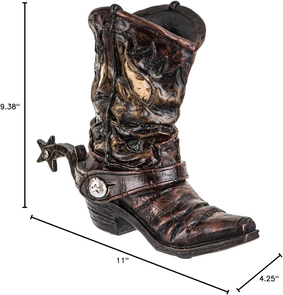 Simple & Elegant: Hollowed out from the center for convenient display, this cowboy boot vase for flowers is the epitome of Western allure. It features a heavy resin construction in various shades of brown and black with a wide opening up top.
