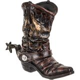 Realistic Cowboy Vase: This handsome reddish brown, beige, black & silver cowboy boot vase is made of resin and features a traditional cowboy boot shape that is wrinkled to mimic the look of leather. Complement your themed Western table decor with this rustic accent.
