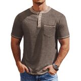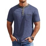 Design: Short sleeves and a classic henley style define these henley shirts for men. The added front pocket not only enhances functionality but also adds a fashionable touch to the overall design.