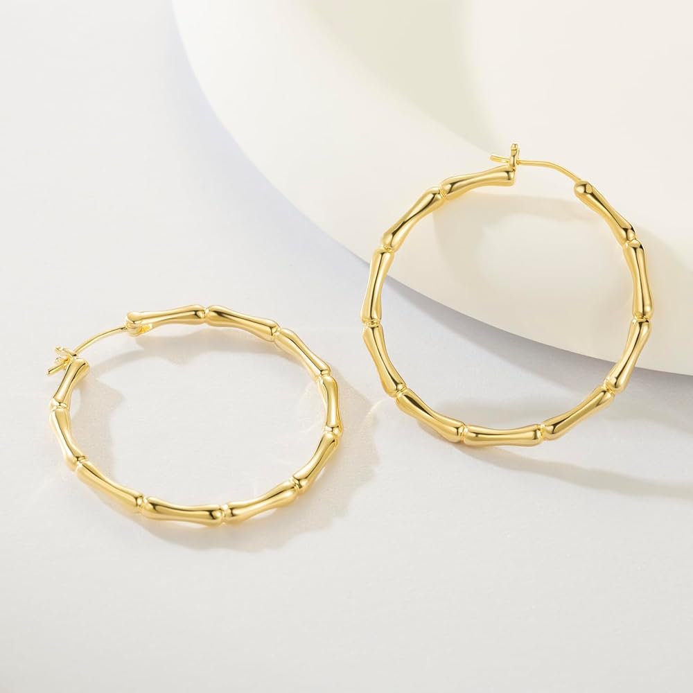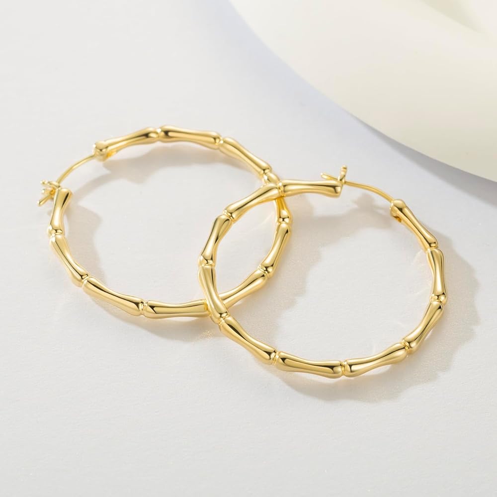 Innovative Bamboo Joint Design, Setting them apart from traditional gold рlаtеd hoops earrings for women, these earrings gold hoops boast a thick bamboo joint design. This not only provides an enhanced aesthetic appeal but also signifies strength, resilience, and growth. The intricate detailing of 14k gold hoop earrings for women captures the nature beauty, merging it with the opulence of gold.