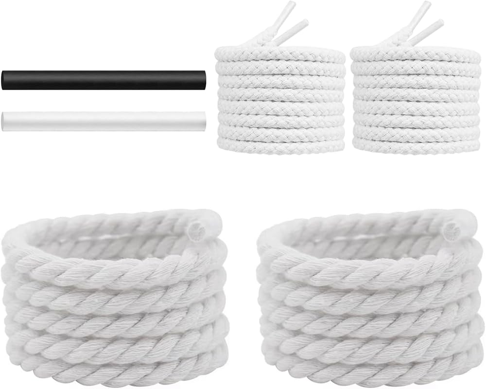 【High Quality Materials】Chunky twisted shoe laces Made from 100% Cotton materials, 8-ply Braided Cotton Rope Hemp Design, Cotton laces are soft, solid, durable, double-knot and non-slip features.
