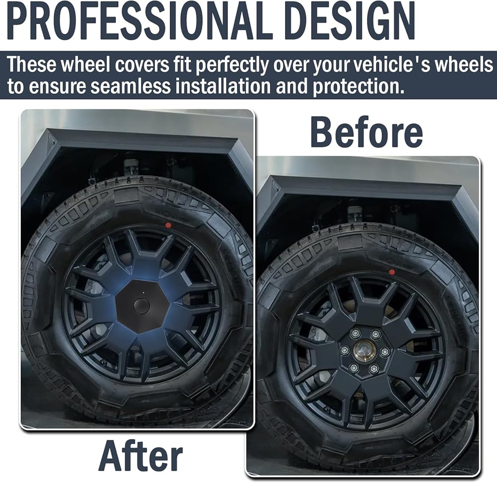 【تصميم احترافي】مصممة لسيارة تيسلا سايبرتراك 2023-2024، تضمن أغطية المحور هذه تركيبًا سلسًا وحماية العجلات من خلال الدمج بشكل مثالي مع محاور السيارة.