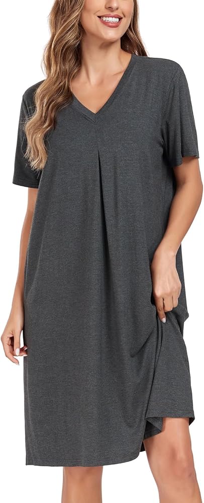 Features: This womens nightgown design with short sleeve, v neck, pleated front, knee length, solid color and loose fit. The loose fit design as boyfriend style, suitable for most body types.