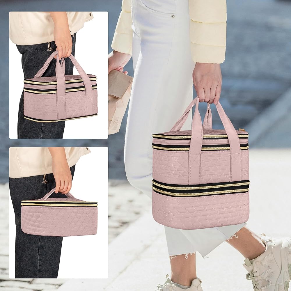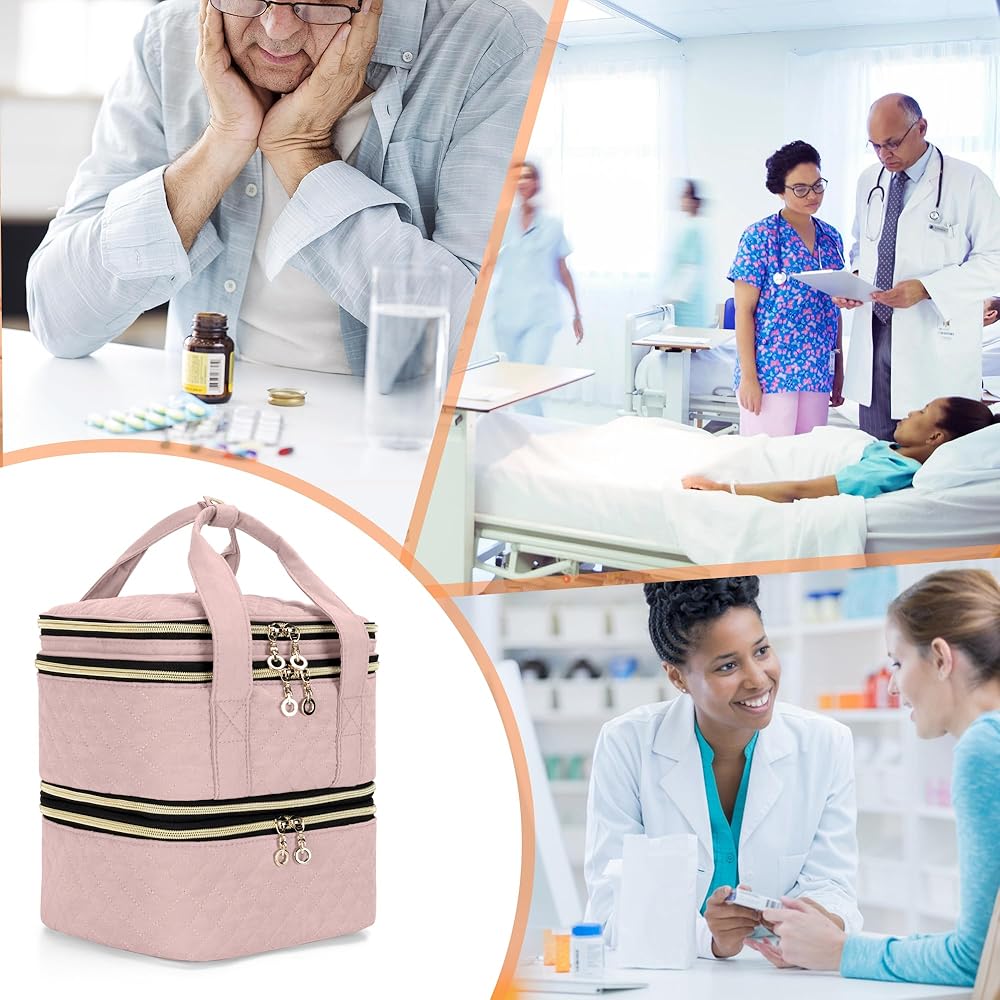 YARWO Pill Bottles Organizer Empty, Upgraded 3 Layers Medicine Storage Bag with Demountable Design and Dividers, Medication Travel Case for Pills, Vitamins, Masks, First Aid Supplies, Dusty Rose