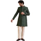 Make a bold statement with this KISAH Men's Navy Blue Jacquard Ethnic Motif Sherwani Pyjama Set, designed for the modern man who values tradition and elegance.