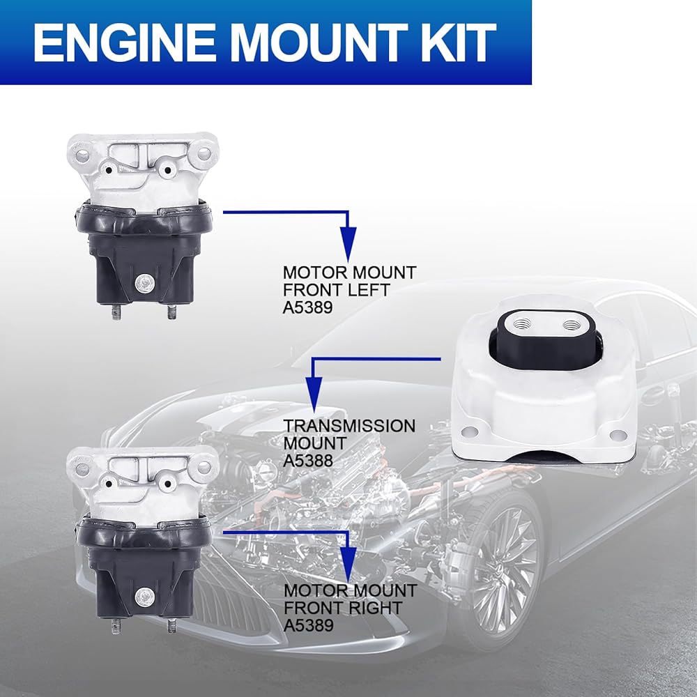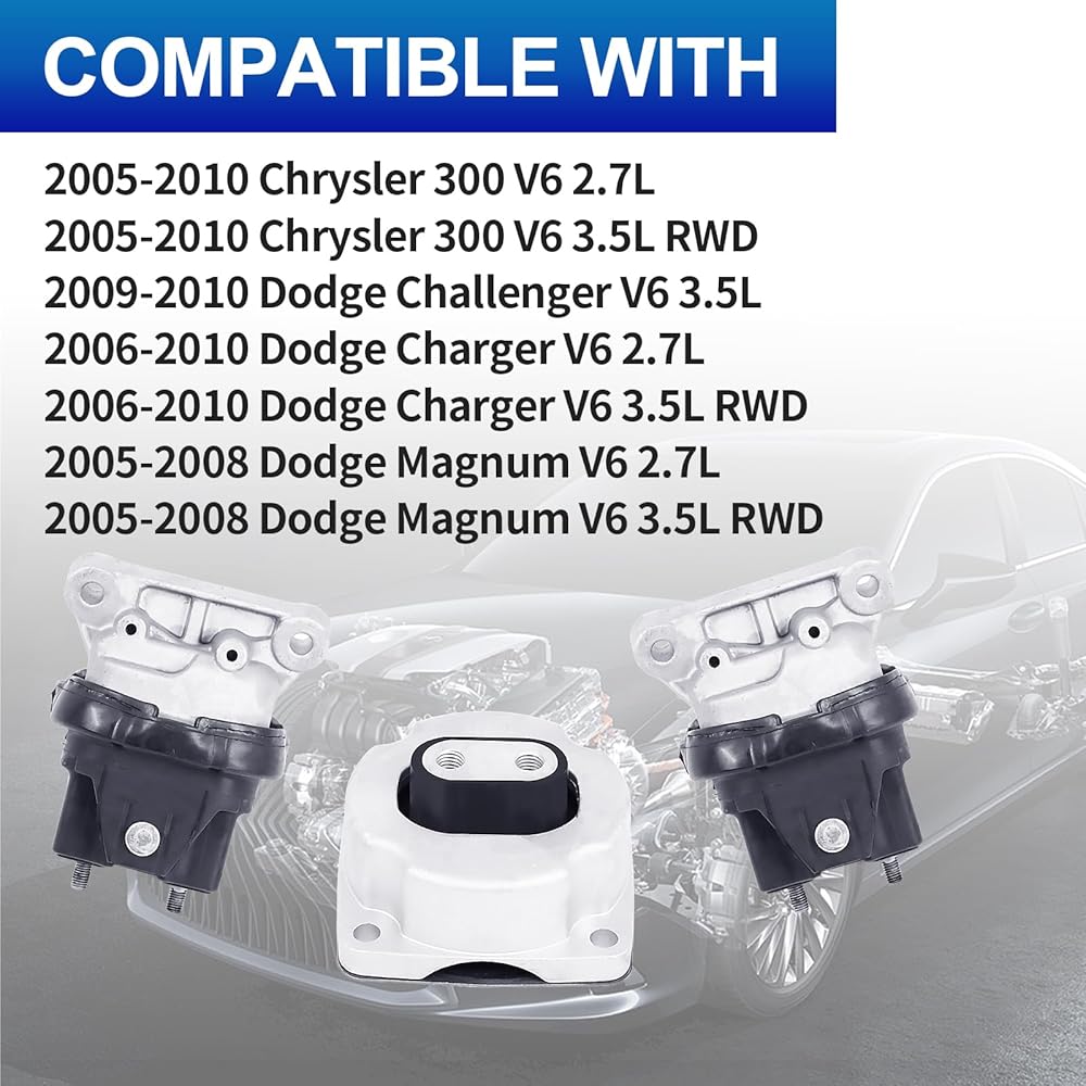 Engine Motor Mounts Set - Compatible with Dodge Charger 2006-2010, Challenger 2009-2010, Magnum 2005-2008 & Chrysler 300 2005-2010, Auto Transmission, Replace# A5389 A5389 A5388, Set of 3