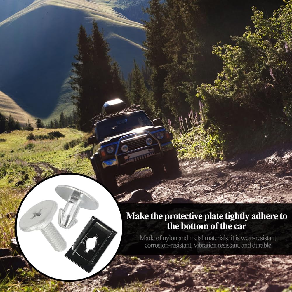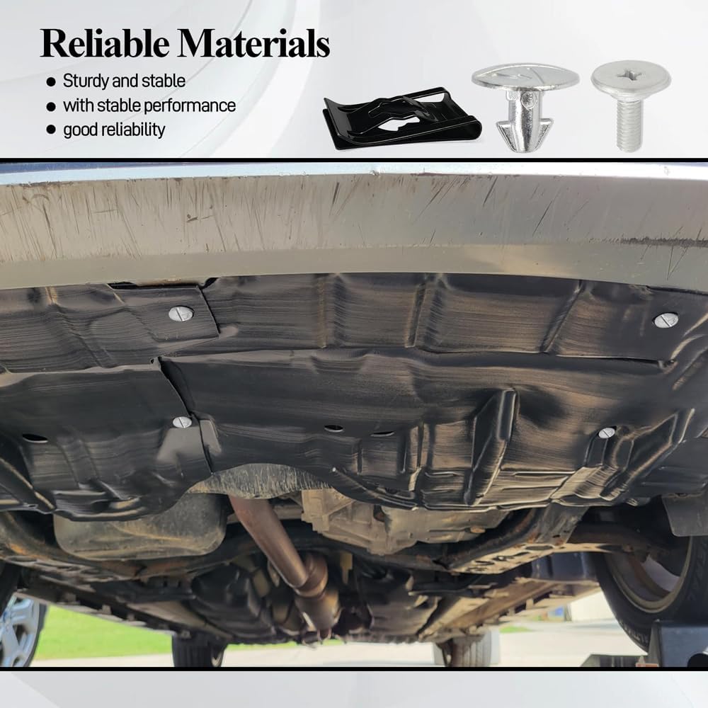 [Function]:The Lower engine shield cover bolt kit are used for undercarriage skid plate or oil pan slid plate, enhance the engine's working performance