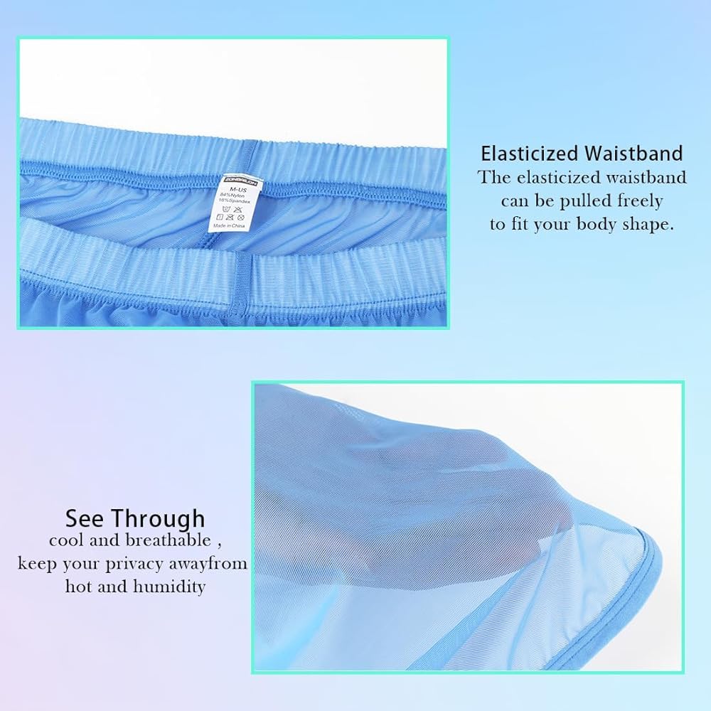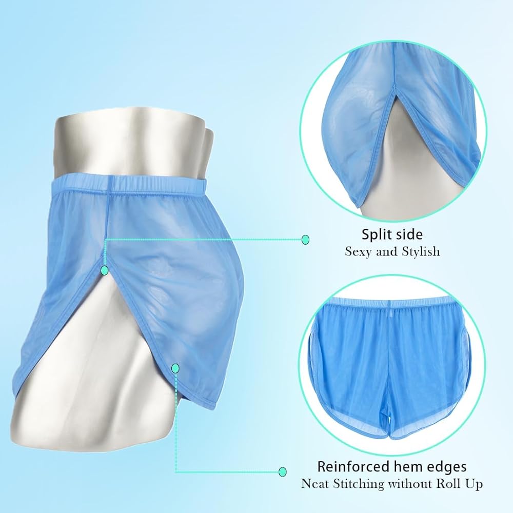 Mens Sexy Shorts Transparent Boxer Briefs Underwear Ultra Thin Split Side Mesh See Through Underpants