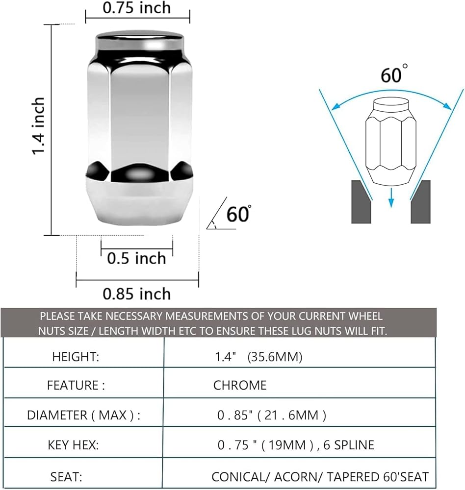 ⛳【Lug Nut Set Specifications】Lug Nut Set Specifications:Please confirm the size of your golf cart wheels, Height:1.35", Inner Diameter:0.46",Outer Diameter:0.86".