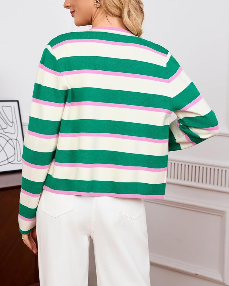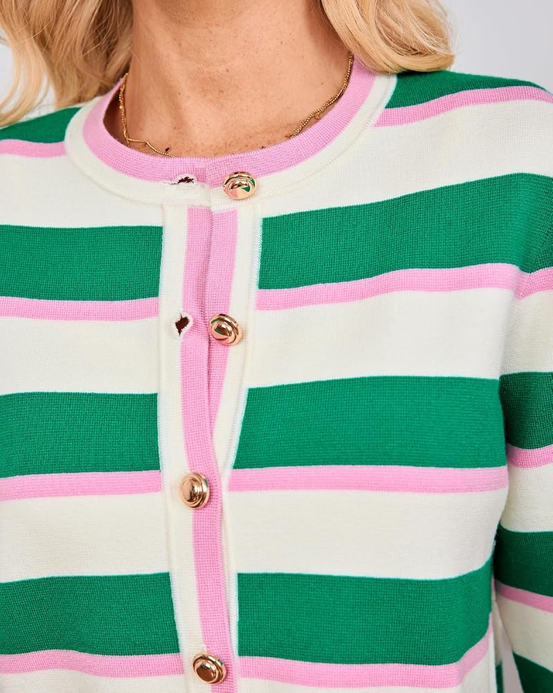 Bright Color: Knitted jacket comes in three bright and striped colours. It has gold toned buttons, a boxy cropped cut.