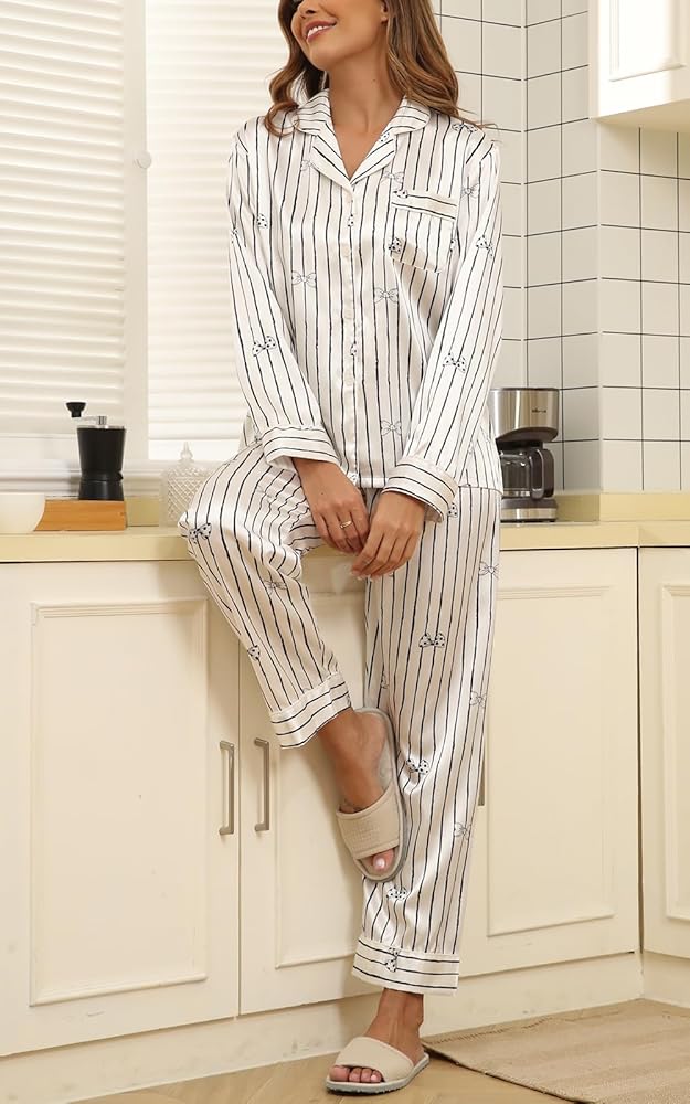 Occasion: This satin long sleeve pajamas is perfect for sleeping, home wear or loungewear, you will feel comfortable and have a relax moment with the lightweight and breathable pajama set.