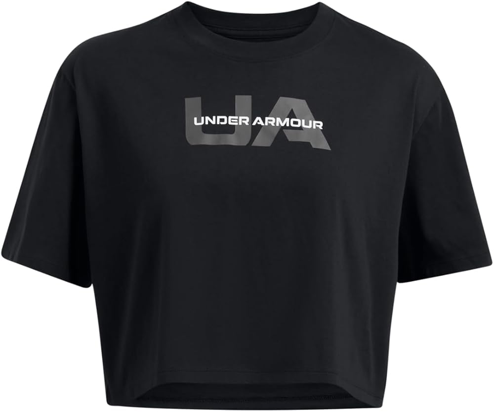 Under Armour 1386846-1-LG UA W Boxy Crop Branded SS Black LG