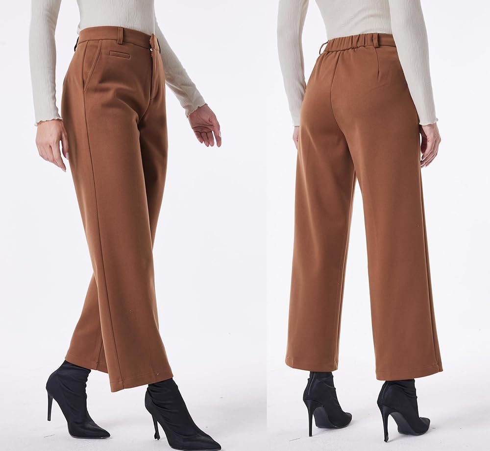 heipeiwa Women's Wool Blend Winter Pants Warm High Waist Dress Work Business Casual Slacks Pant