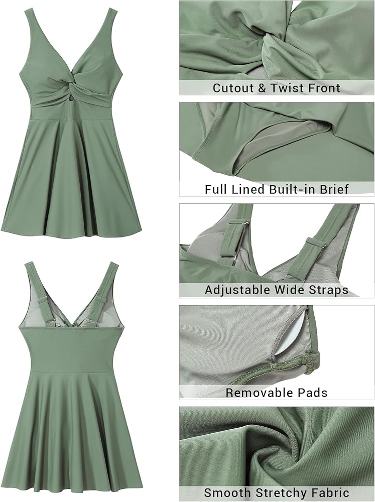 Featuring a unique cut-out detail and twist design, this bathing suit dress adds a touch of elegance and trendiness to your swim wardrobe, making you stand out while stay comfortable