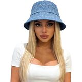 WOMEN'S SPARKLY RHINESTONE BUCKET HAT BLING PACKABLE SUMMER OUTDOOR VACATION SUN HAT FISHERMAN CAP