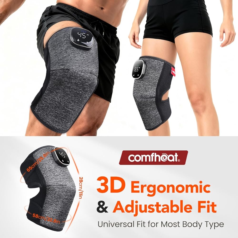 Adjustable Straps & Keep in Place: Adjustable Velcro straps hold the knee massage heating pad in place, suitable for maximum thigh circumference up to 18.8 inches and maximum calf circumference up to 17.6 inches, can be used on most people's knee for both men and women.