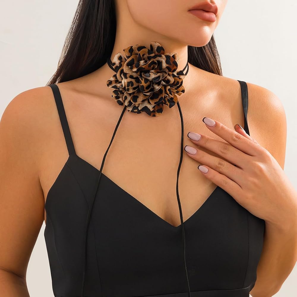 Big Flower Choker Necklace:This Leopard Print Choker Necklace can be easily paired with various outfits, making it a versatile addition to your jewelry collection that enhances your personal style
