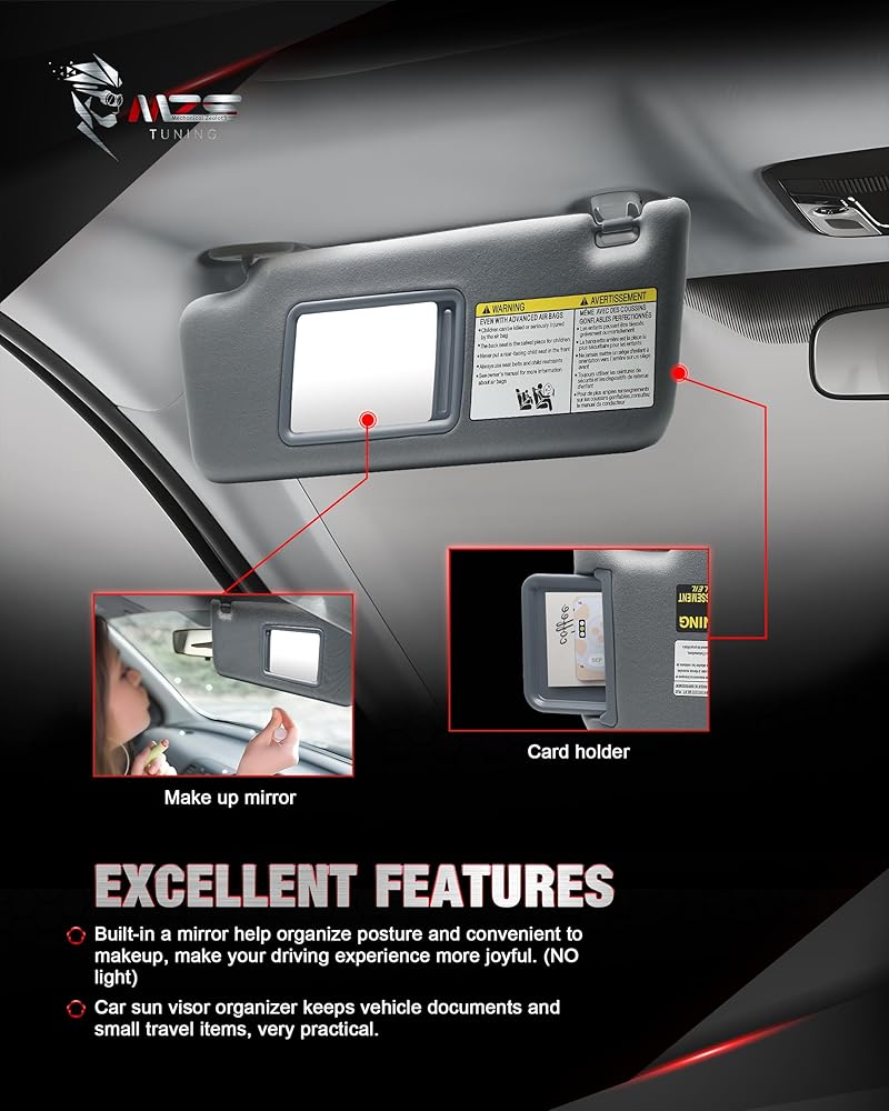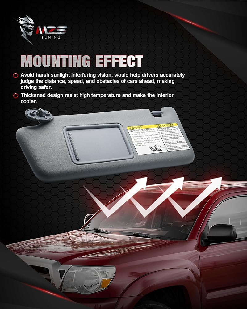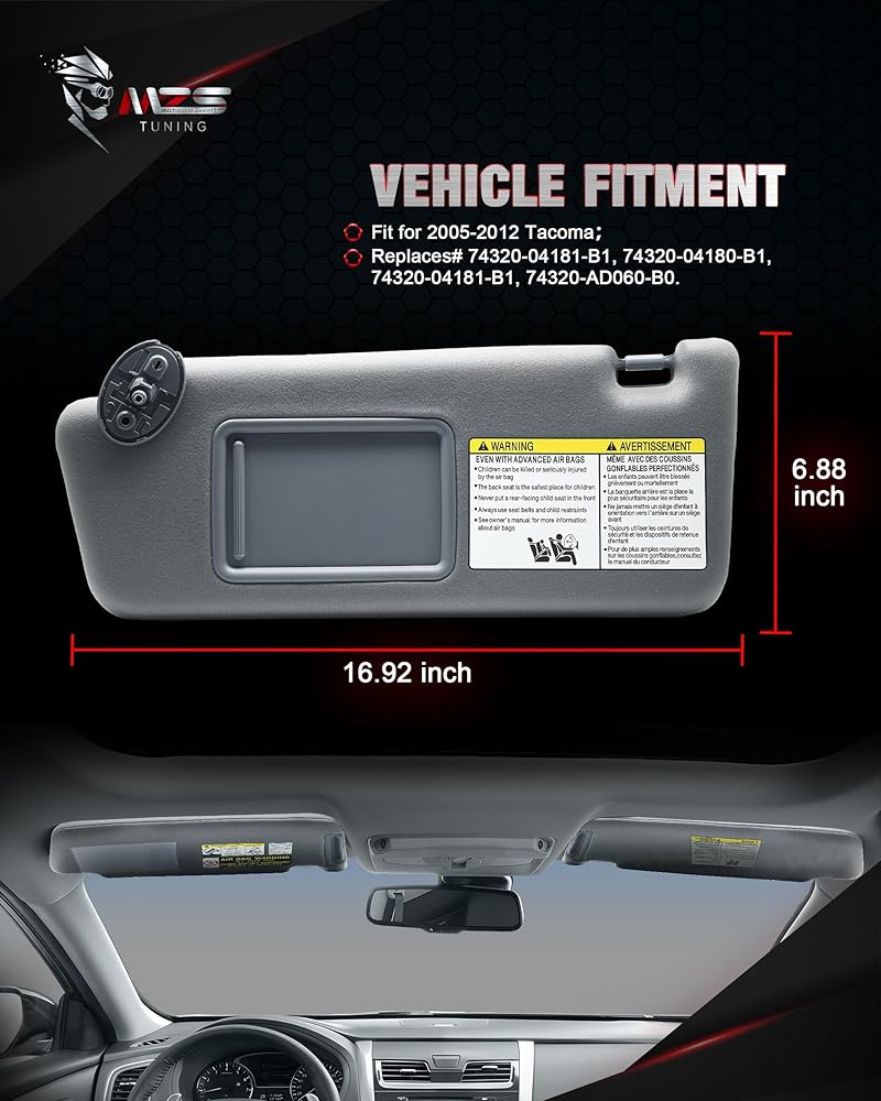 Vehicle Compatibility: Gray Right Passenger Side Sun Visor fits for 2005-2012 Tacoma; Replaces# 74310-04081-B0,74320-04180-B0.(No Lights In Visor)