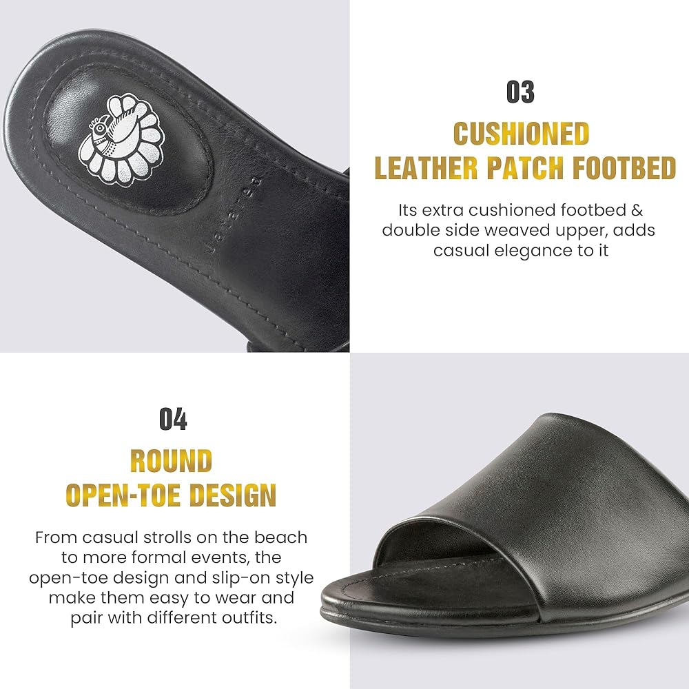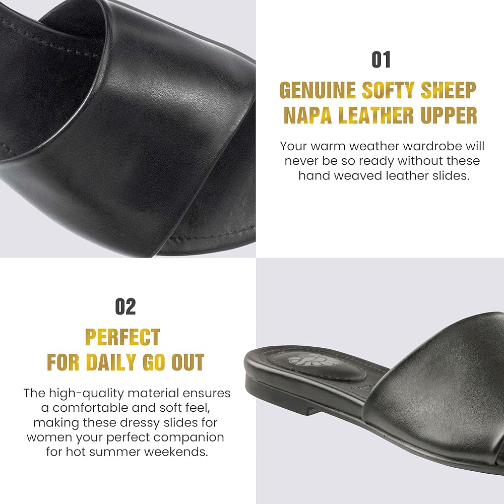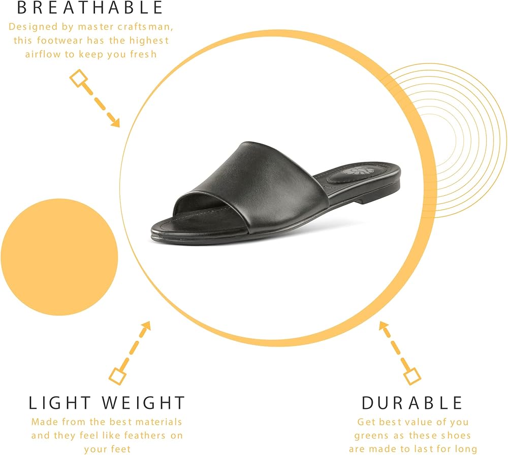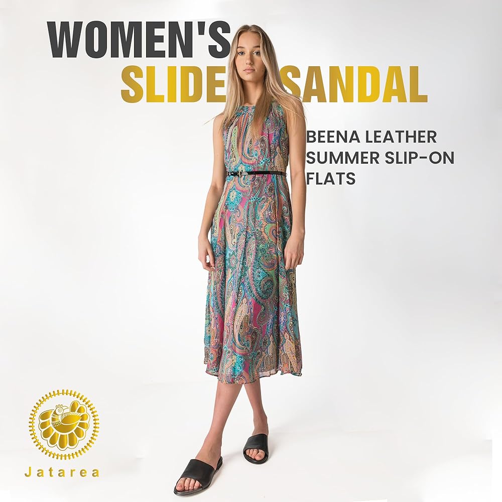 JATAREA Women’s Slip-On Flat Sandals with Round Open Toe | Dressy Summer Slides for Women