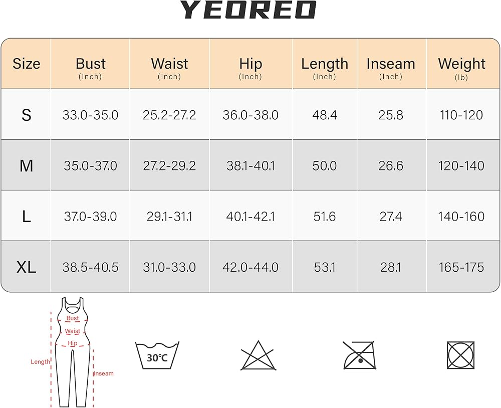 With removable pads, moisture-wicking, non see-through, tummy control, skin-friendly, open back and scoop neck design, YEOREO Lizvette full-length jumpsuits meet everything you need.