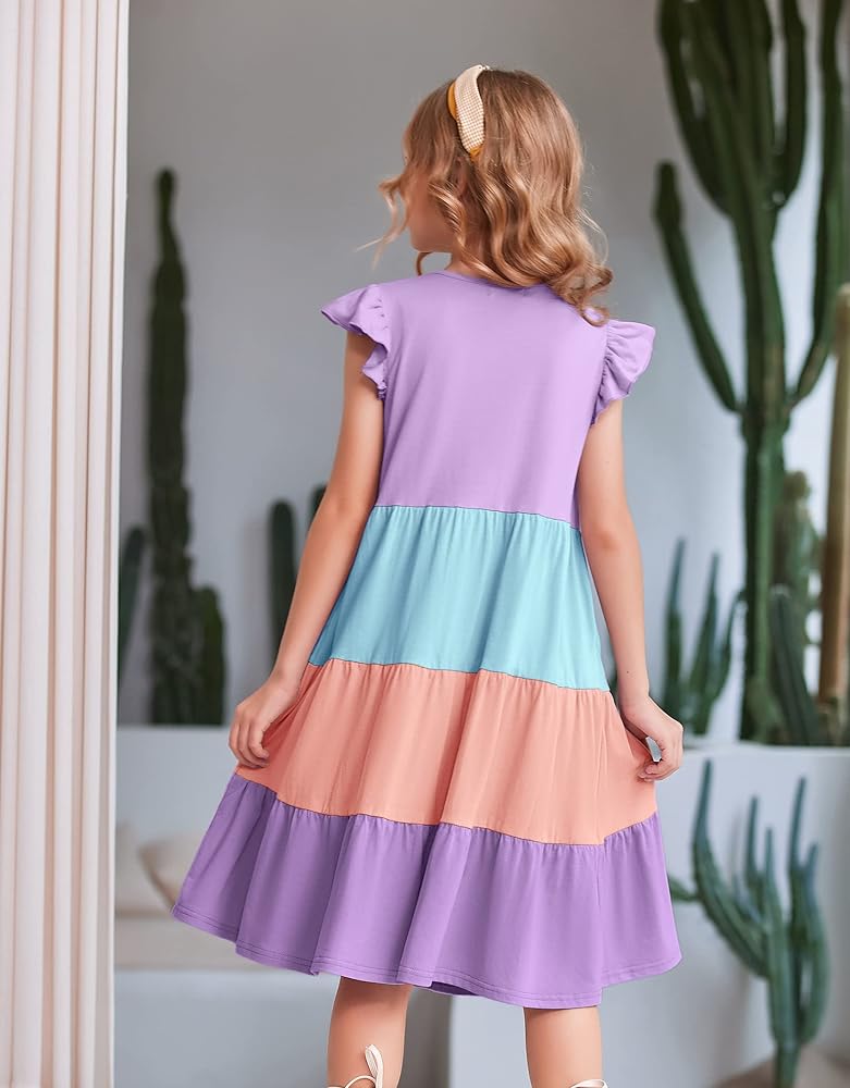 [Feature]:We have designed hidden pockets on both sides of the dress, for your convenience to put some small items. The vintage ruffled sleeves, flowy ruffled hem, and A-line tiered style will make your girl look adorable. Most importantly, the vibrant candy color combination will undoubtedly make you the focus of the crowd.