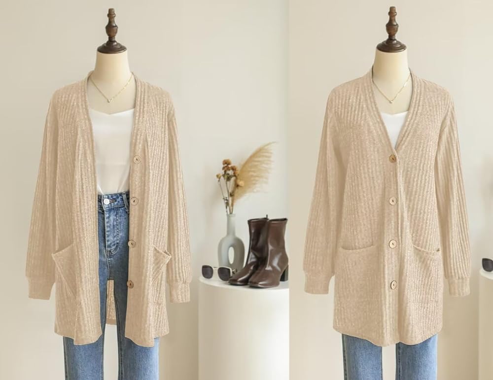 Cardigan with Pockets for Women - The two spacious side pockets on this open front cardigan for women can serve as a handy place to store your keys, your phone or other items you have on hand. And perfect for warming hands or holding your cell when not in use. In addition, it boasts a sleek button-up design that allows you to wear it open or closed. Such casual work cardigans are a closet staple so you won't want to miss out on this!