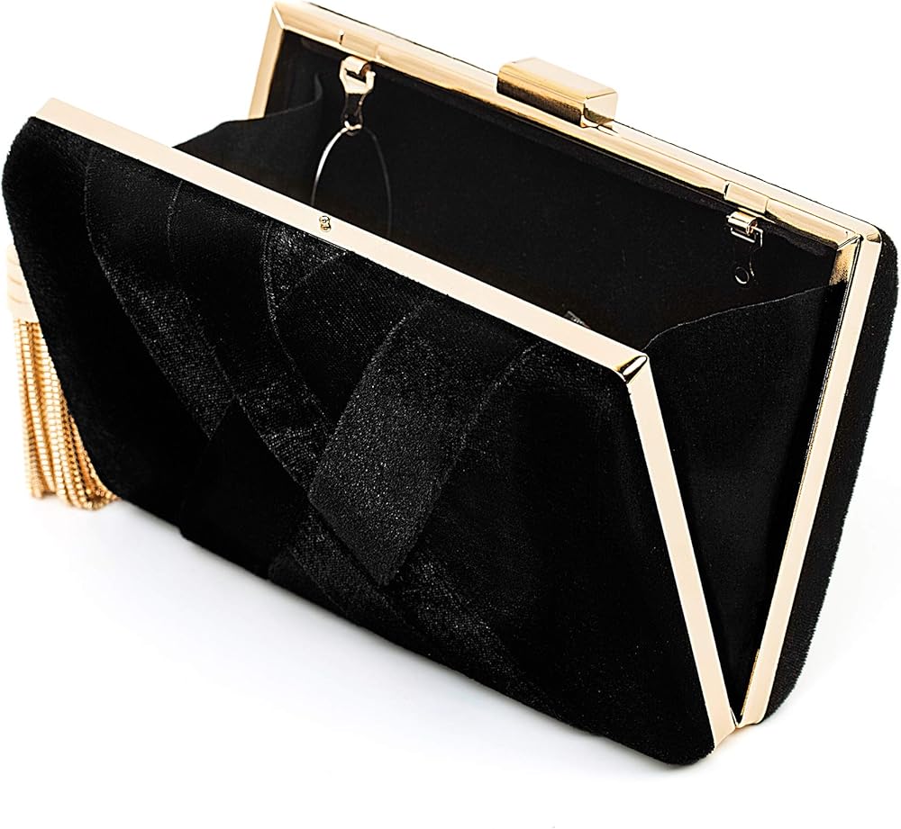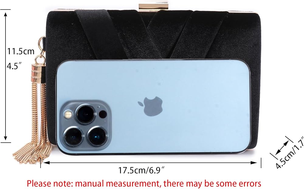 Soft Material : The evening bag is crafted by soft velvet,you will feel soft and warm when you hold it by hand,decorated with tassel on one side .The simple and dainty evening clutch reveal your noble temperament.