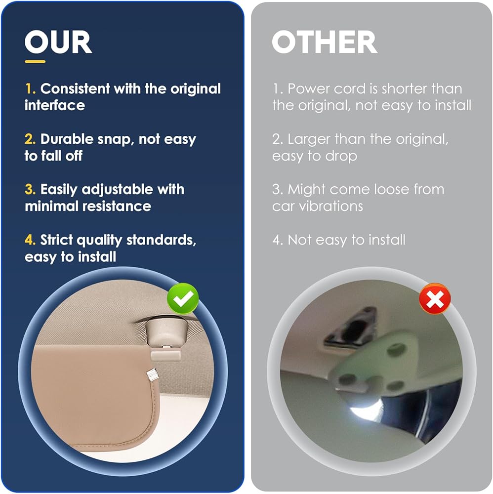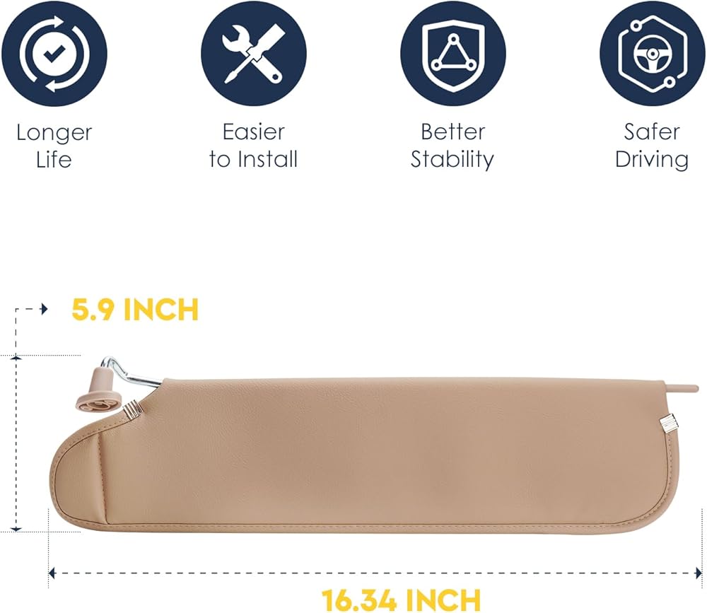 Durable: The driver & passenger sides sun visor made of high quality ABS durable plastic, can withstand the sun for a long time, easy to clean and and also having a better cooling effect.
