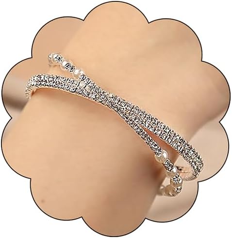 Vintage Pearl Bangle Bracelet for Women MultiLayer Crystal Strand Open Cuff Bracelet Stretch Rhinestone Wrap Wrist Bracelet Accessories for Wedding Parties