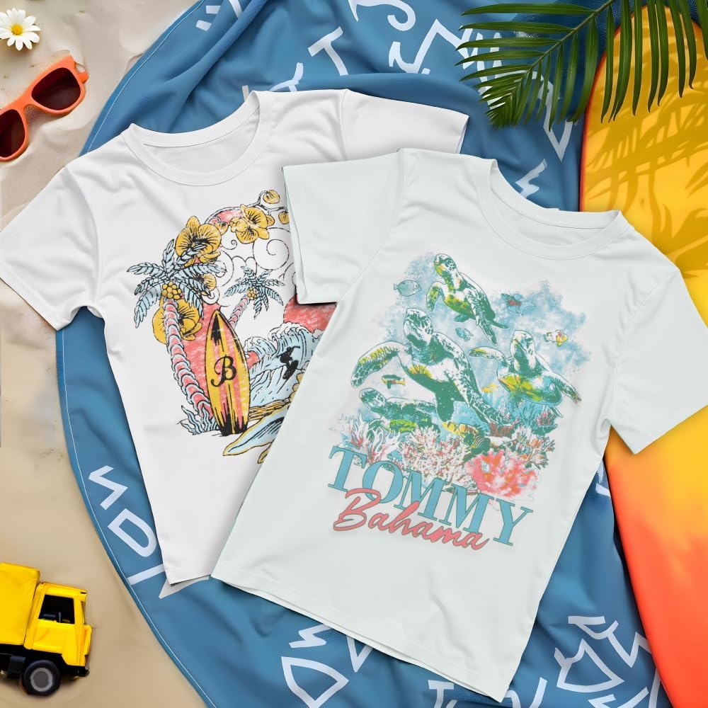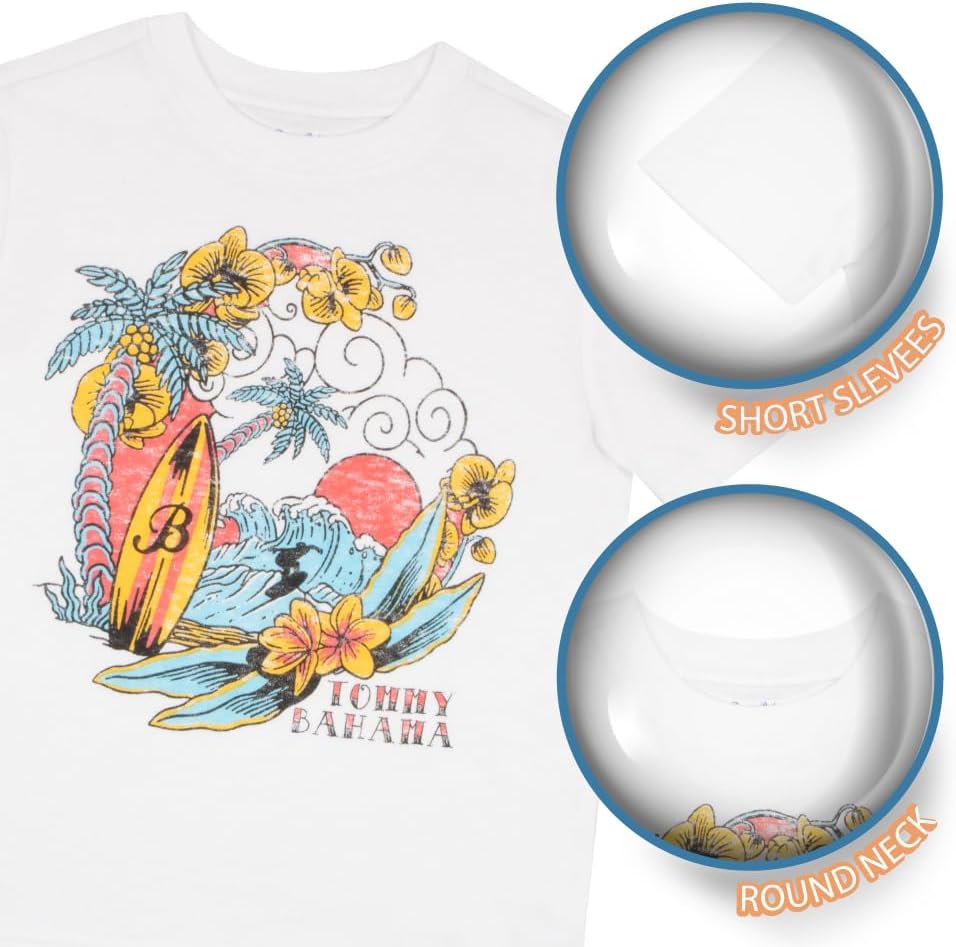 Fashionable Tees: This set features 2 graphic t-shirts each with a cool and casual Tommy Bahama design, making them perfect for any activity, from playdates to casual outings, or even a day at the beach.