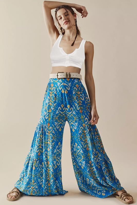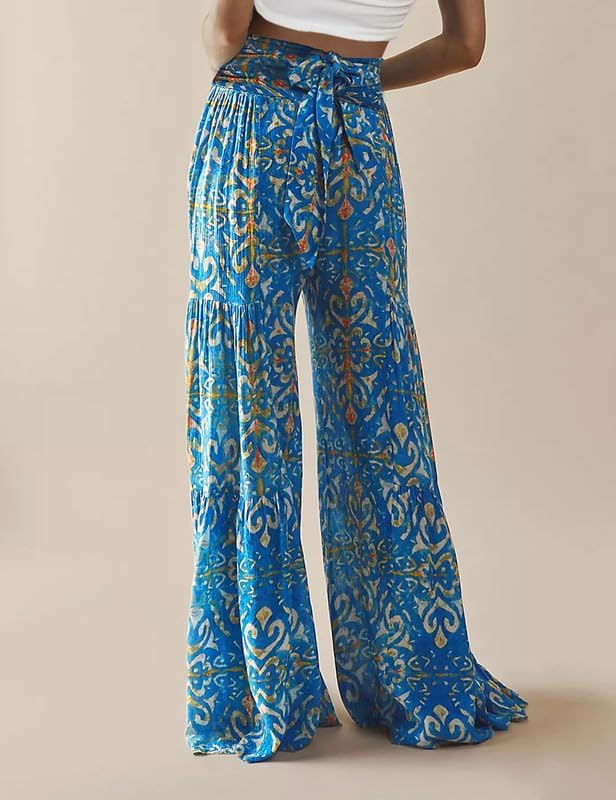 ===✪Ladies High Waist Wide Leg Palazzo Lounge Pants Beach Boho Tie-Waist Bell Bottoms Trousers✪===