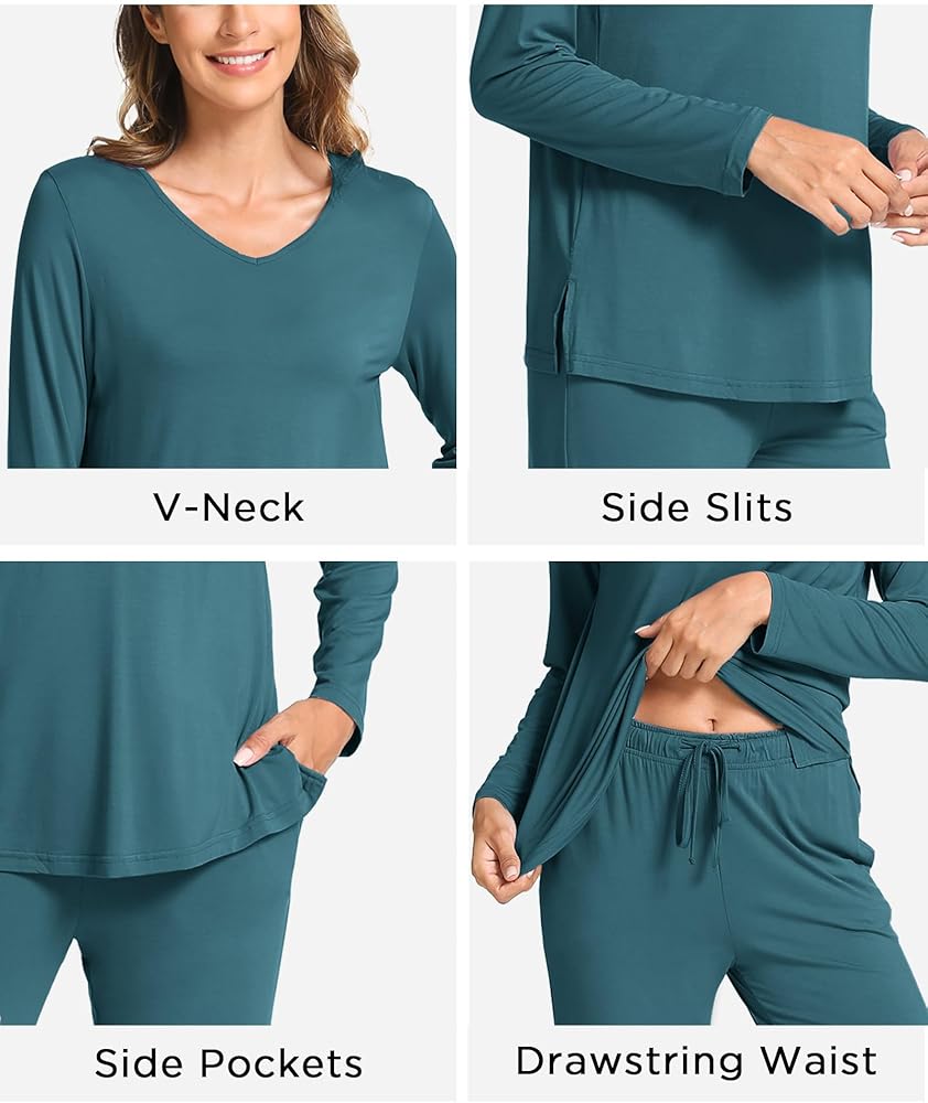 The sleep sets for women feature a flattering V-neck and a subtle slit at the hem of the top, adding an extra touch of style