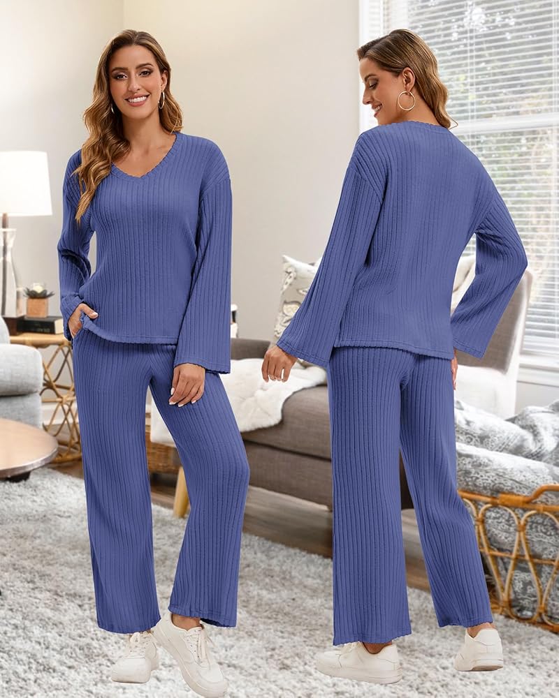 【ULTRA SOFT RIBBED LOUNGE SETS FOR WOMEN】The pj sets for woman is made of stretchy and ultra-comfortable ribbed fleece fabric, soft and skin-friendly, both inside and outside fabrics are soft to the touch, lightweight and comfortable, flattering to the body shape,comfortable and breathable to wear, good warmth without rubbing your delicate skin.
