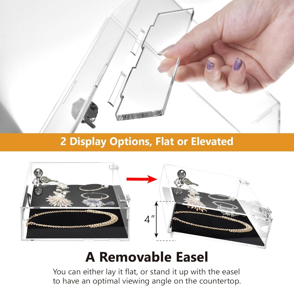 OPTIMAL DISPLAY - Designed for elegance and functionality, our case features a removable acrylic easel at the bottom, paired with a black velvet insert. Place it on a desktop or stand it up with the easel for the perfect viewing angle. Additionally, the adjustable acrylic board allows you to customize the lid opening angle, enhancing your presentation to different heights and angles.