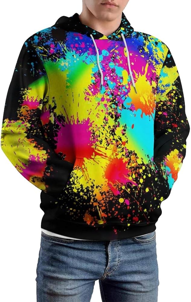 Kangaroo Pockets: The front kangaroo pocket can store small everyday items, and the cuffs hem elastic bands. Full-width printing, showing youthful personality.