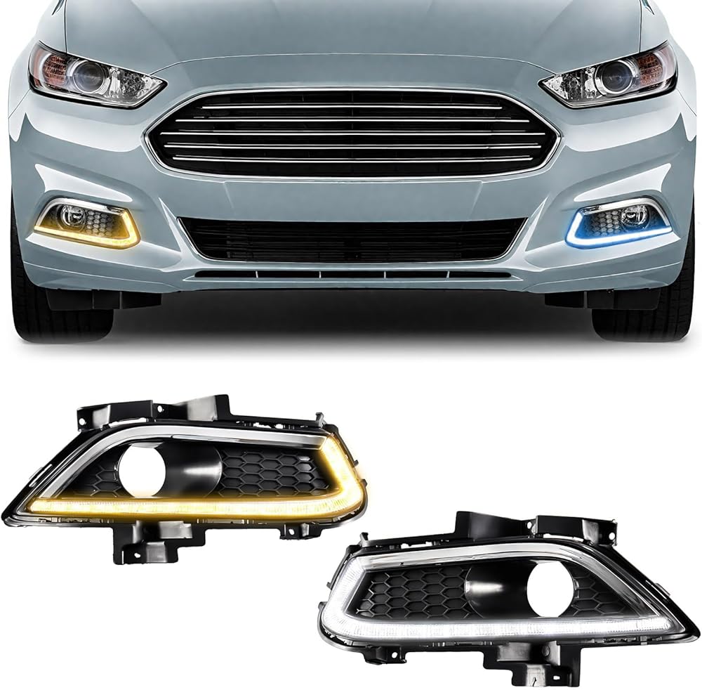 Fancemot LED Front Bumper White Daytime Running Lights (DRL) Amber Turn Signal Lights Blue Low Beam Headlights Fog Lights Compatible with Ford Fusion 2013-2016