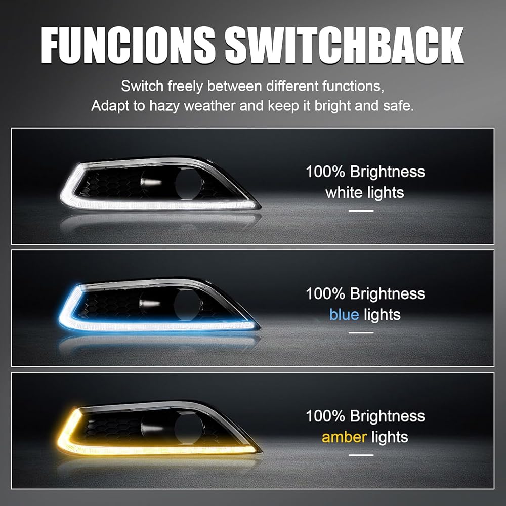 【New Design】These fog lights feature a white driving light for daytime running, amber for turn signals, and blue for low beam headlights. The high-brightness LED illumination is made exclusively to fit Ford Fusion, ensuring a perfect match and superior lighting performance.