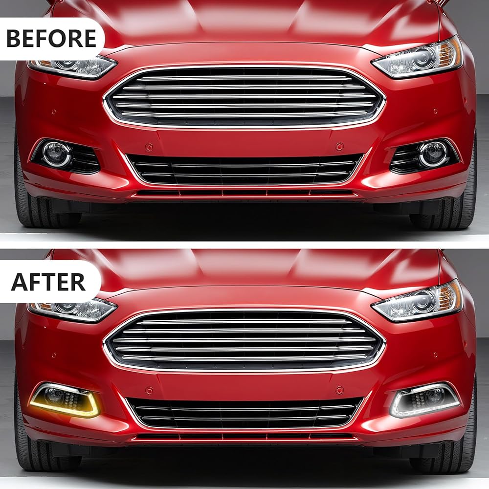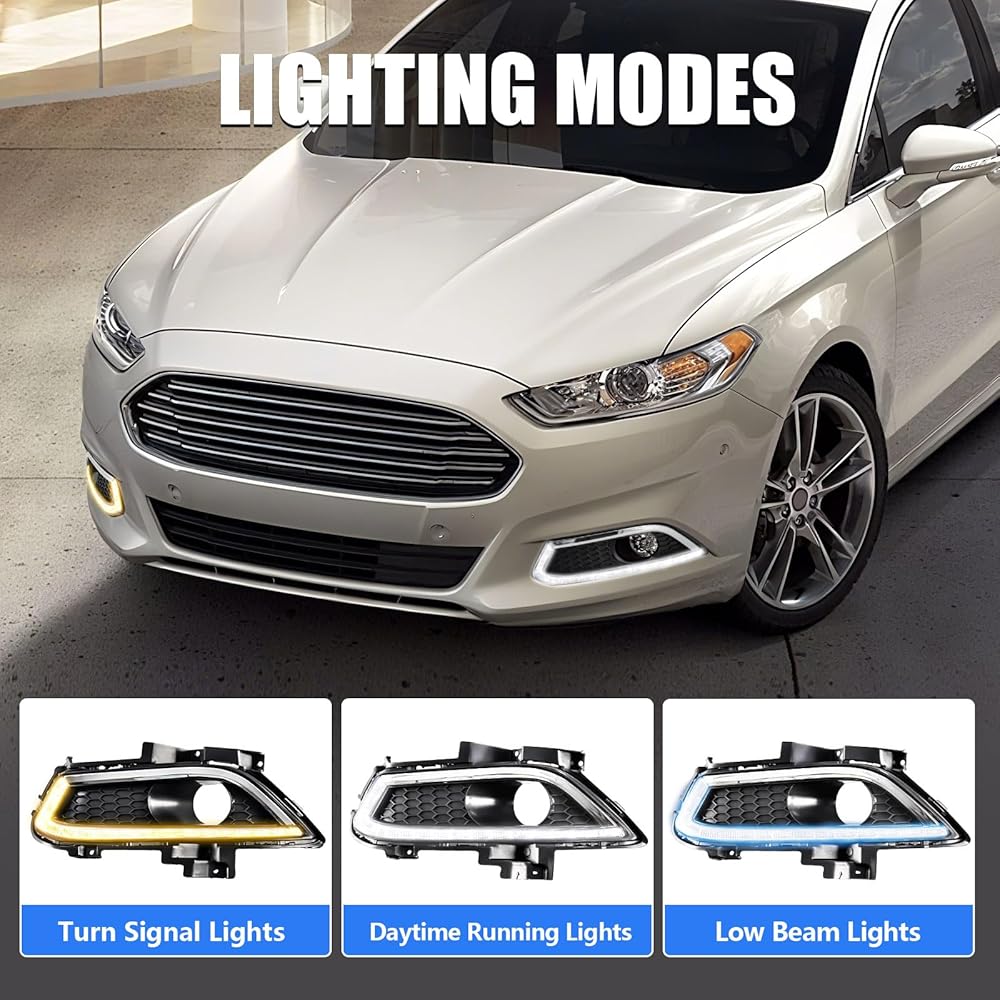 【Fitment】Front bumper fog lights are specifically designed compatible with Ford Fusion 2013-2016. These lights upgrade the standard fog lamp covers to multifunctional LED lights, enhancing both the appearance and safety of your vehicle.