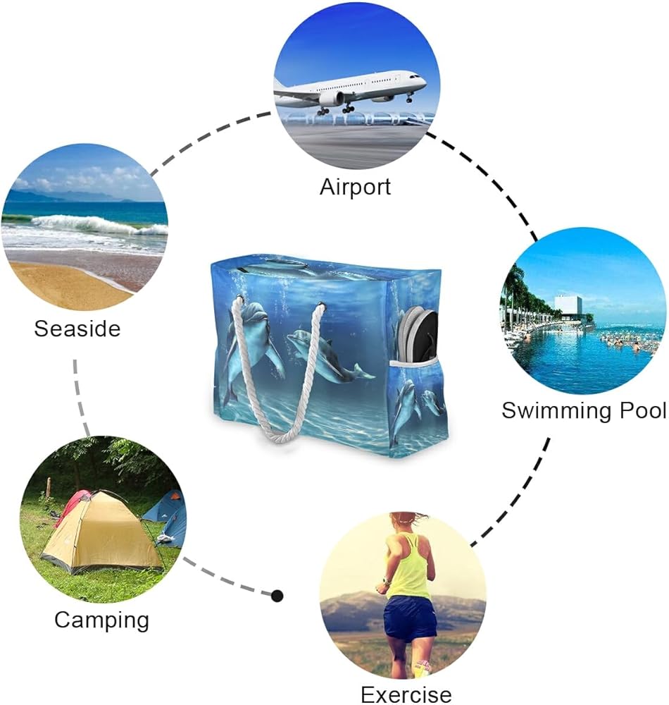 100% Polyester Waterproof Fabric, protects your items from getting wet or damaged. Large Beach Bag Size 20.5 * 7.3 * 15inch(LxWxH), plenty of space to store your necessities.