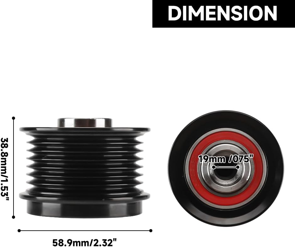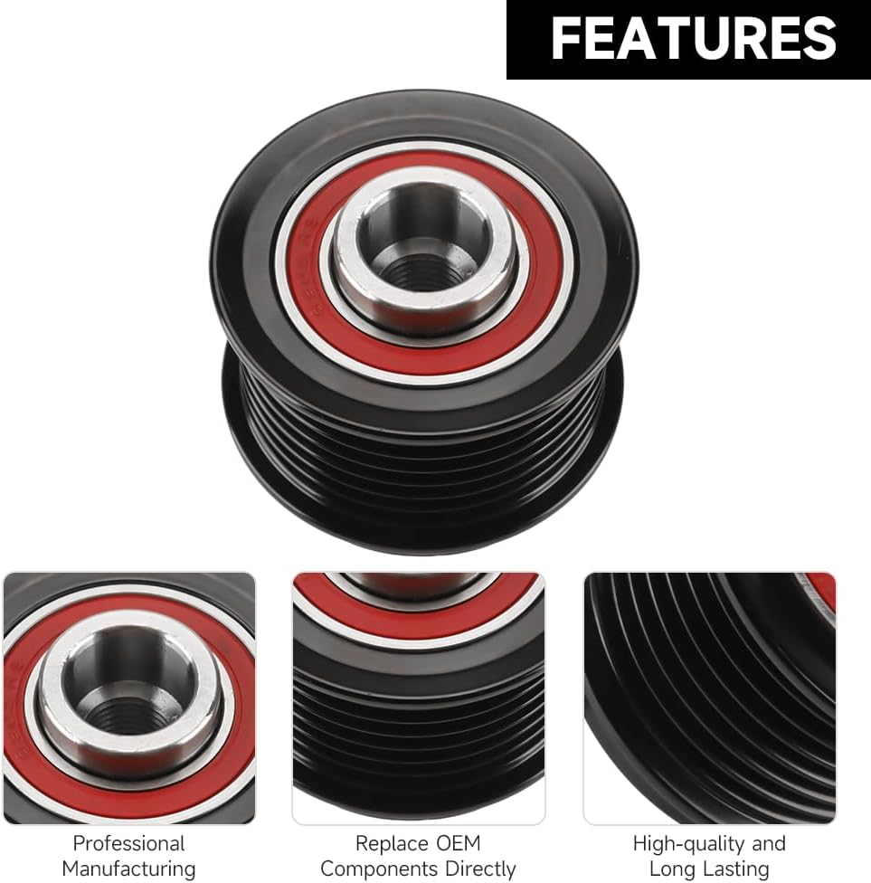 Drive Belt Idler Pulley Belt Idler Grooved Pulley Alternator Clutch Pulley - Compatible for Lexus ES350 3.5L V6 - Gas 2010-2018, for Toyota RAV4 3.5L V6 - Gas 2010-2012 - Replace Part 274150W131