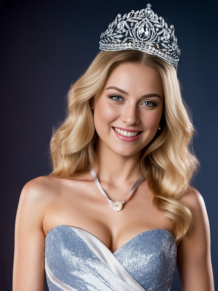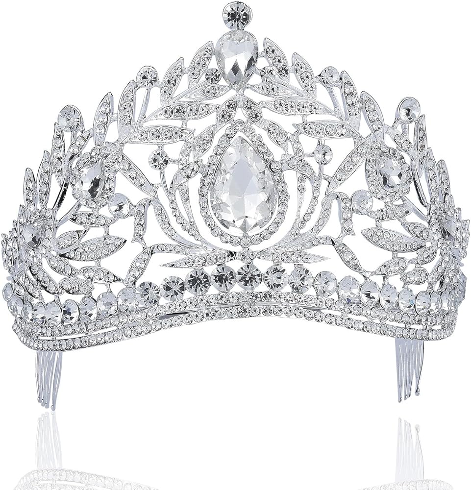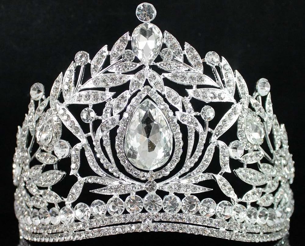 This is fantastic royal floral Austrian rhinestone tiara. Glittery Clear Austrian rhinestones are set on Silver/Gold Tone metal. All the rhinestones shine a lot! Sides hair combs for extra security. This tiara is perfect for wedding, party, prom, pageant or any special occasions!