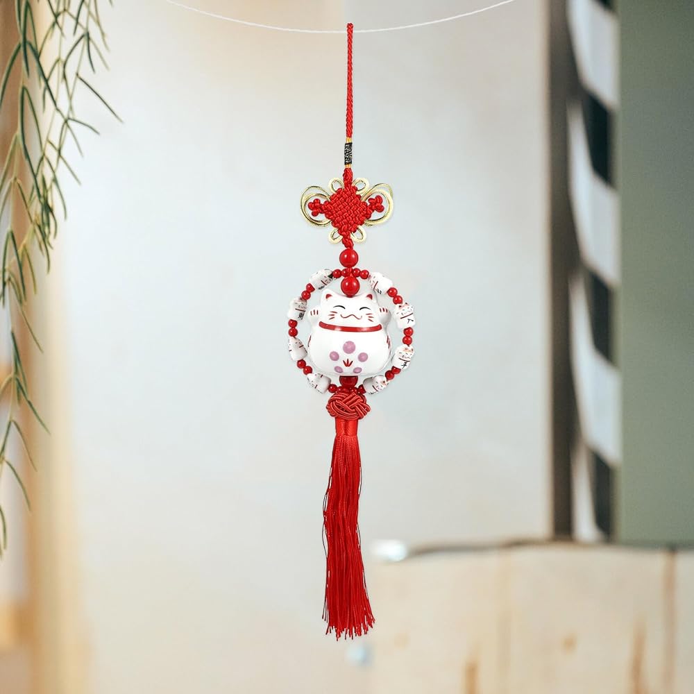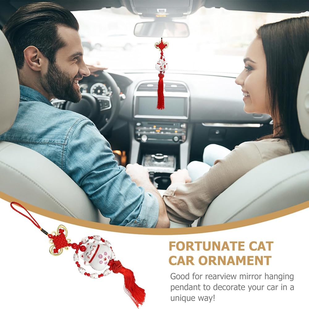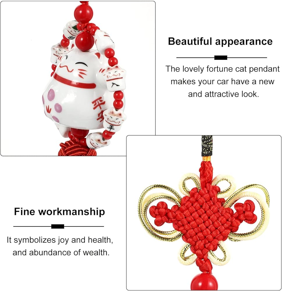 IMIKEYA Mirror Decor Feng Shui Lucky Cat Charm Ceramics Maneki Neko Fortune Cat Figurine Car Rear View Mirror Pendant Key Cell Phone Bag Pendant for Car Interior Ornament Red Interior Accessories